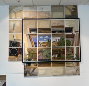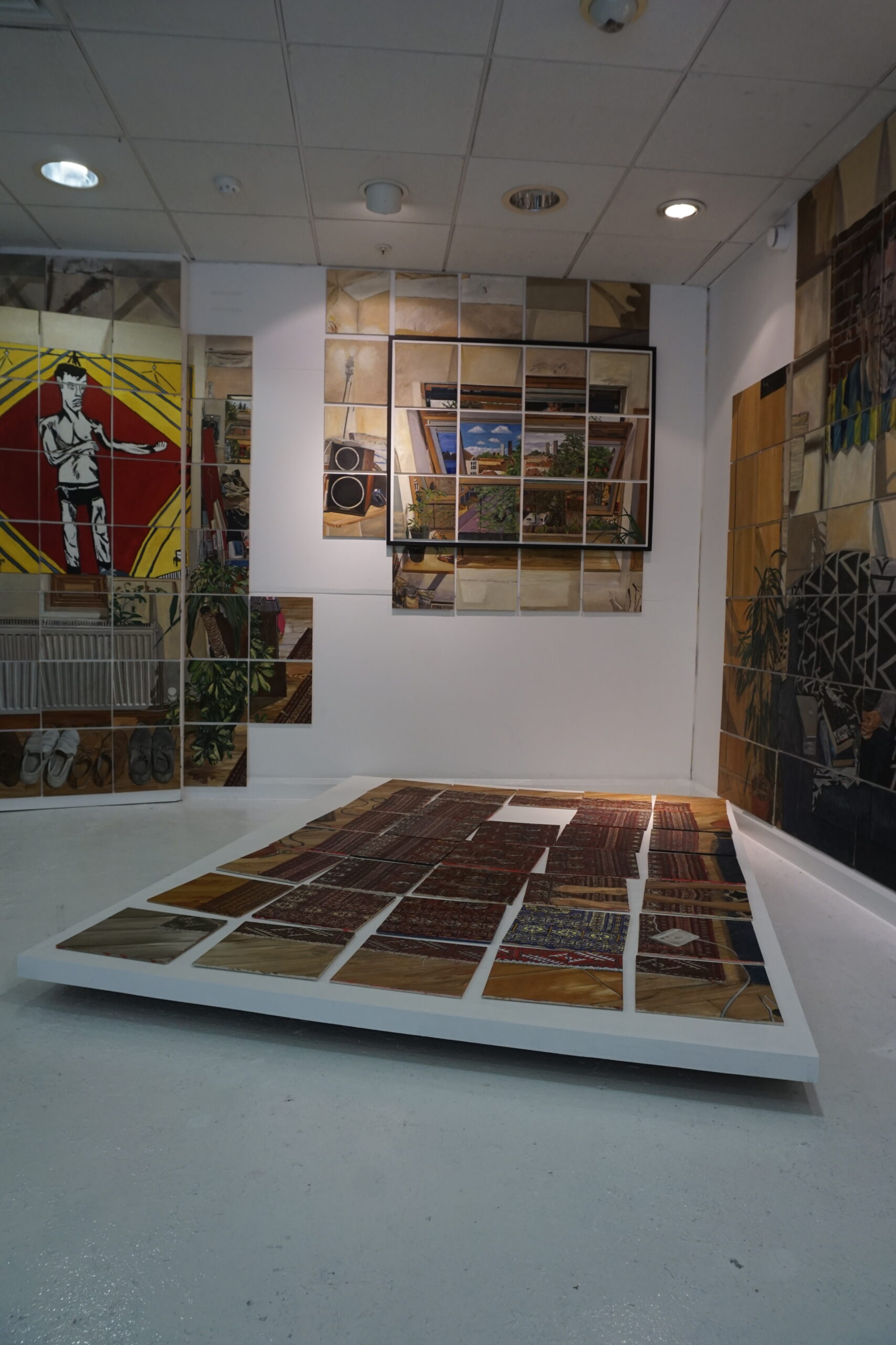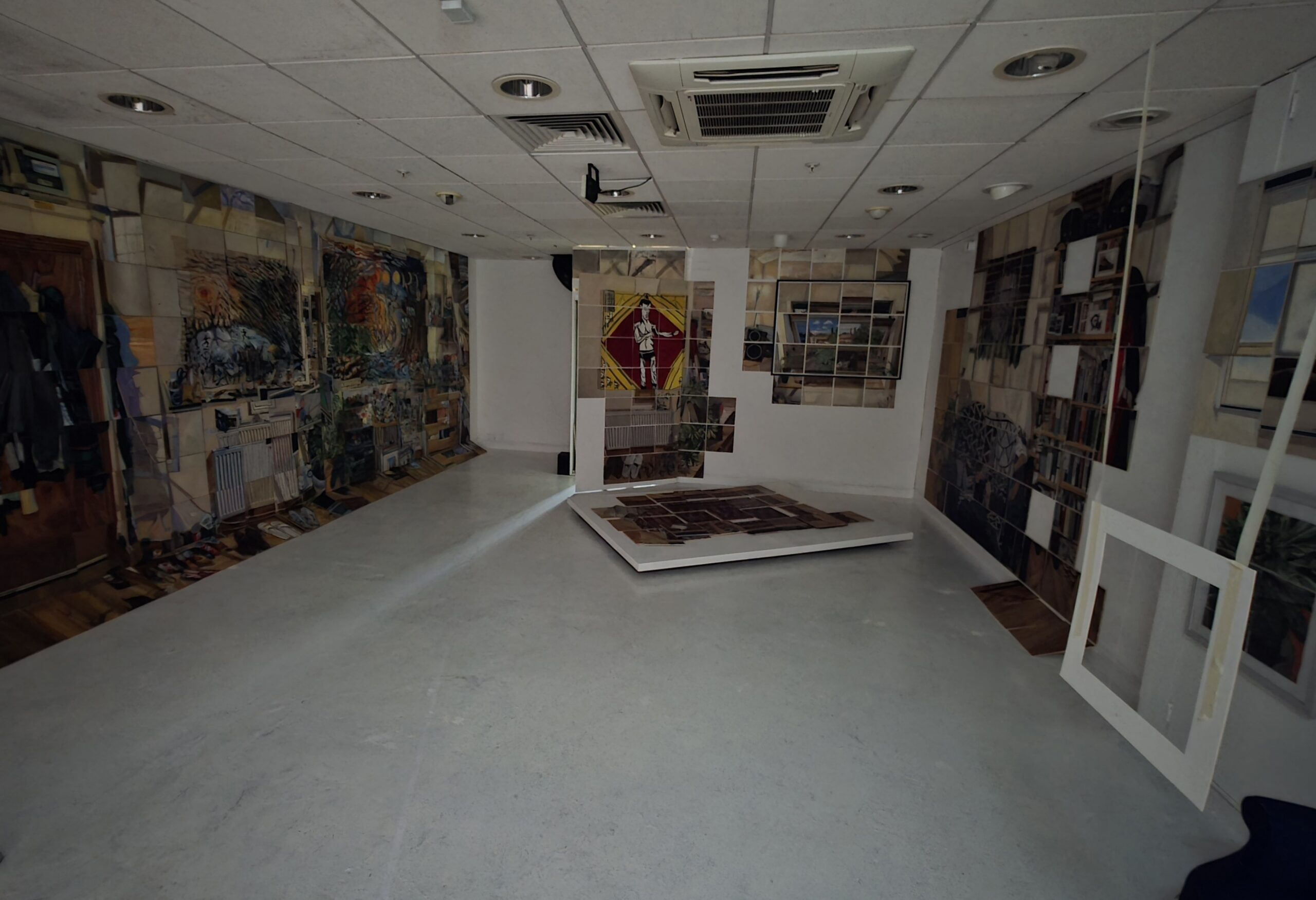 Welcome to my home. In this exhibition you will find more than 400 paintings which make up a life size replica of my studio flat. A jigsaw reboot of the apartment where I live, just five minutes from here.*