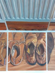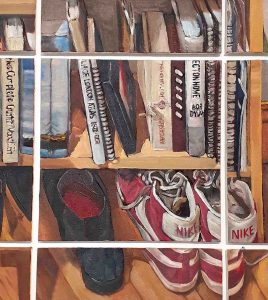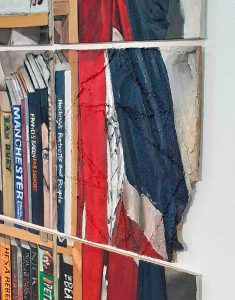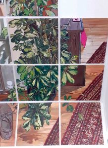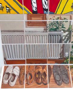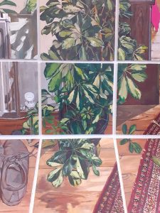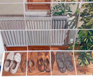 Kitson began his most ambitious ongoing project in 2018. Entitled ‘Machines for Living In’, it involves meticulously recreating his South London studio apartment in oil paint, one square foot at a time. This ‘fragmented, glitchy jigsaw’ acts as a deeply personal visual diary, capturing years of moments and moods.